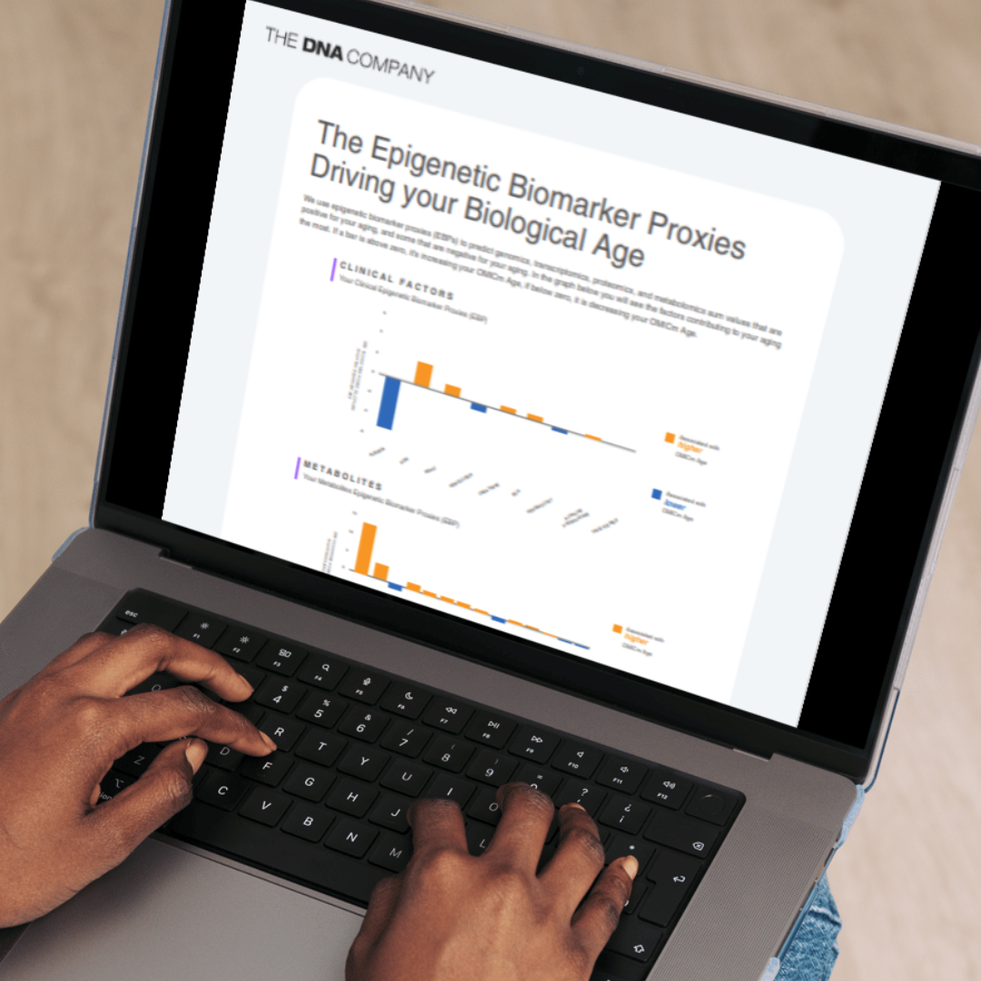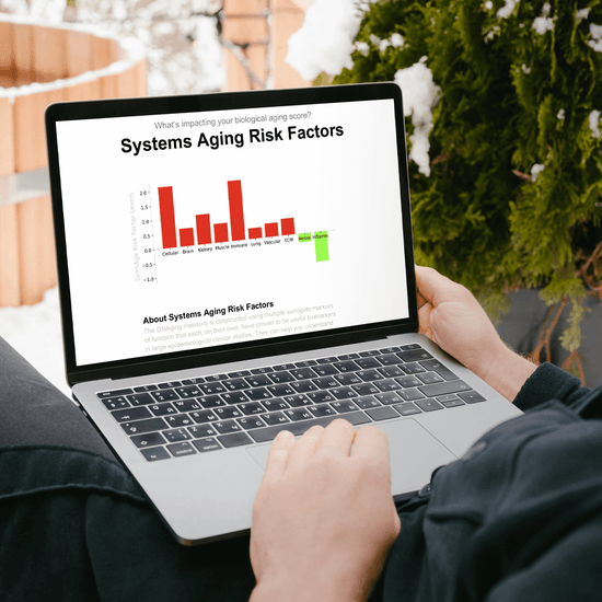 Your personalized report will include your biological age, a comparison to your chronological age, and detailed insights on how various factors like diet, exercise, and lifestyle may be influencing your aging process. The report will also provide actionable recommendations to improve your health and longevity.